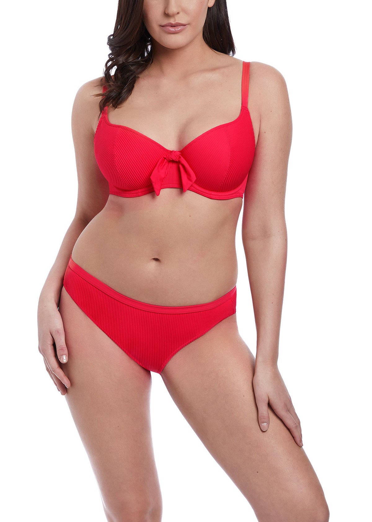 Combining athleisure with swimwear, the Nouveau Sweetheart Padded Bikini Top turns heads in a standout Red shade and bunny knot tie design. Lightly padded foam cups provide perfect support and a smooth rounded shape, while a sweetheart neckline offers uplift and enhanced cleavage in cup sizes D – HH.